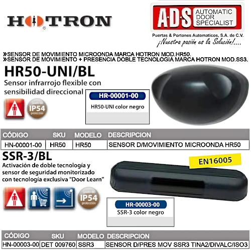 »Sensor de Presencia Infrarrojo Industrial 8M Marca Hotron MOD.HR100, HR100-2.