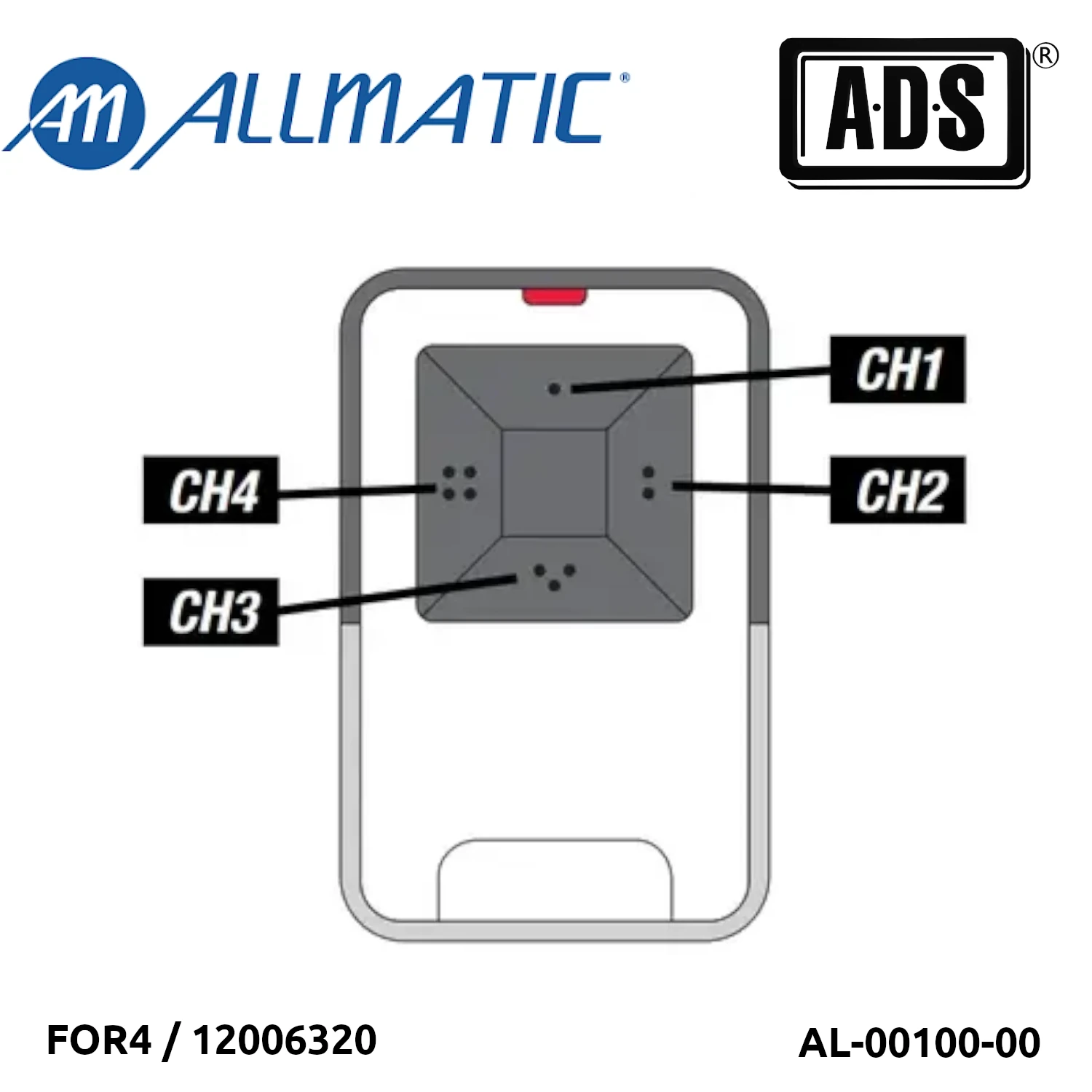 »TRANSMISOR REMOTO 4 CANALES 433.92MHZ FOR4 MARCA ALLMATIC MOD.FOR4