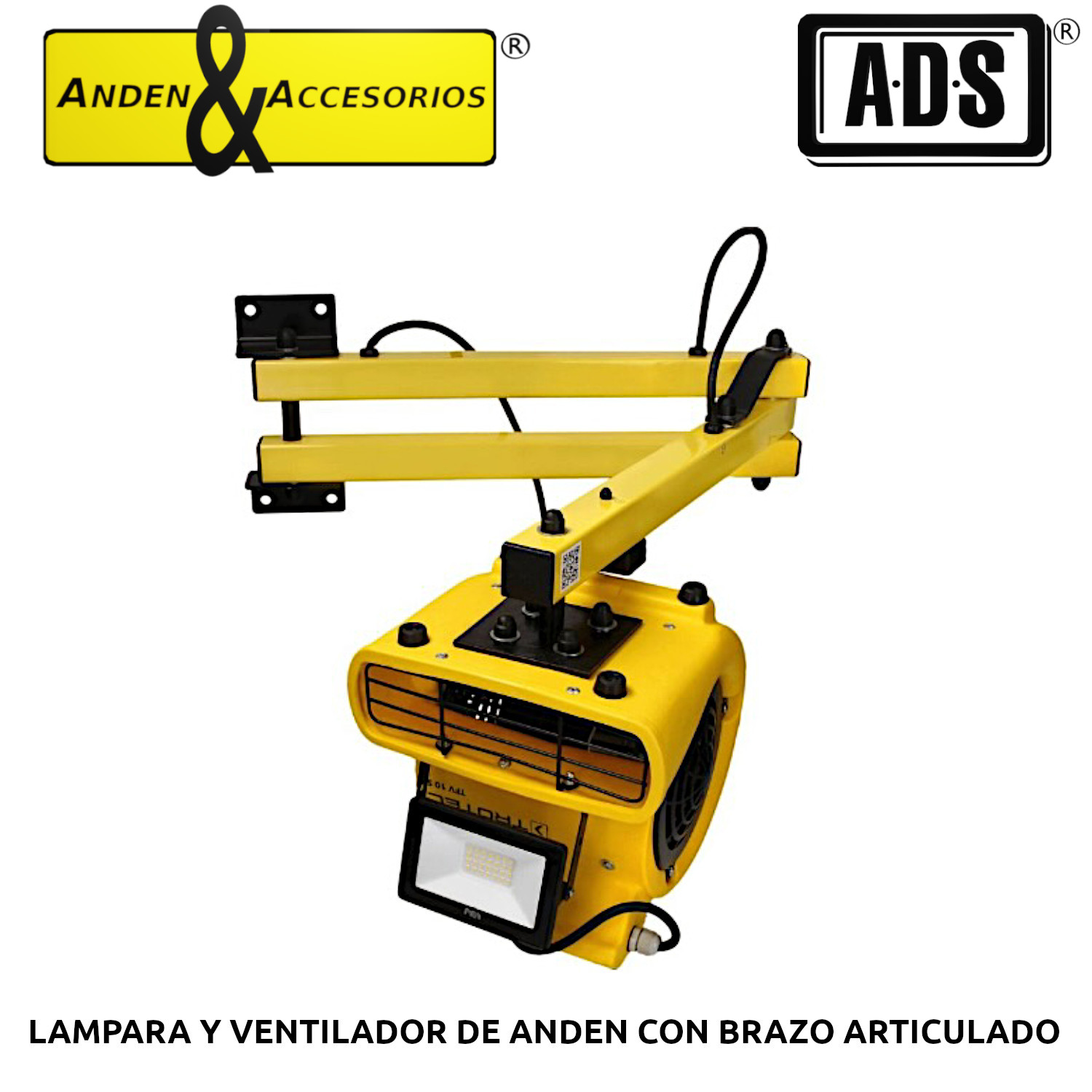 »LAMPARA Y VENTILADOR DE ANDEN CON BRAZO ARTICULADO MARCA ADS