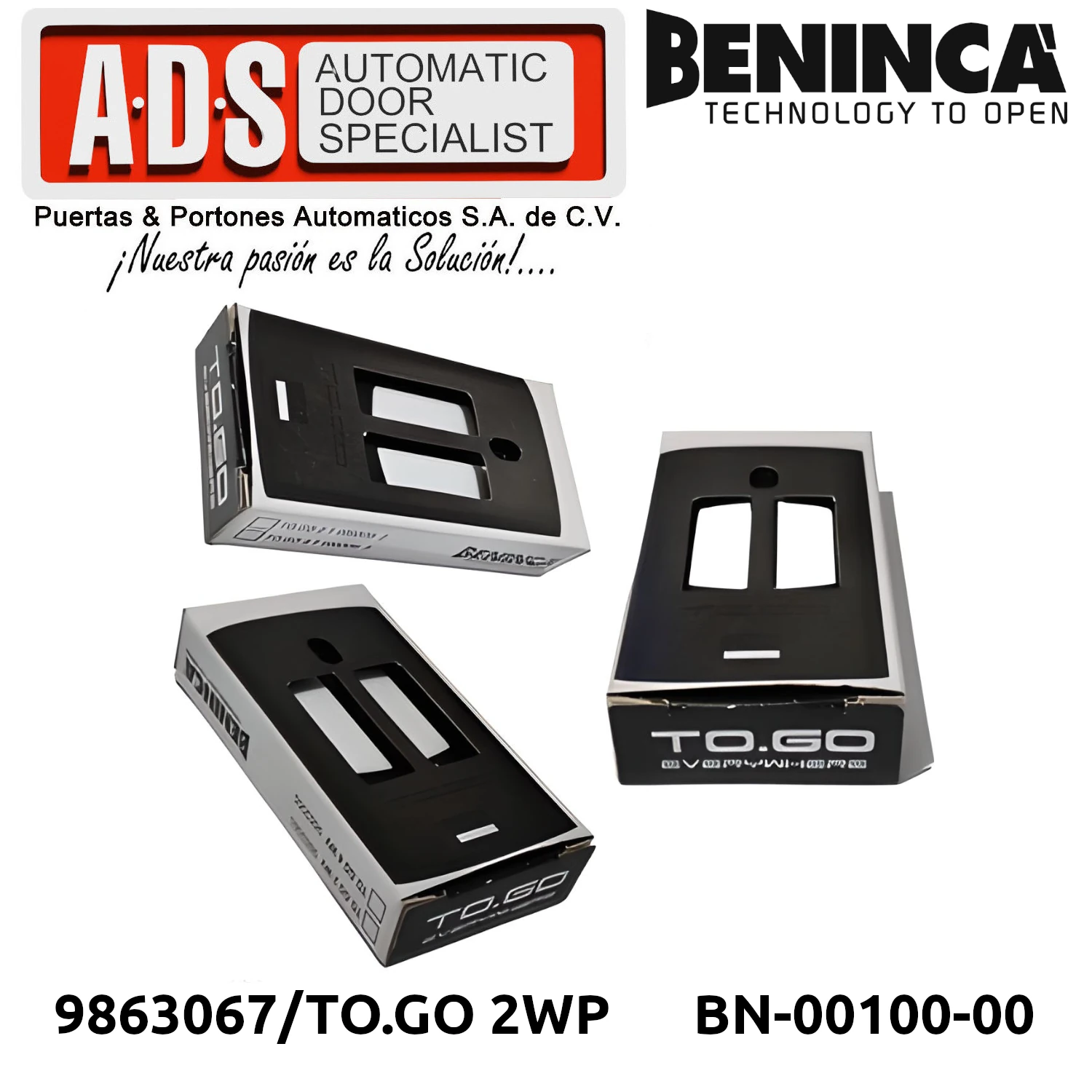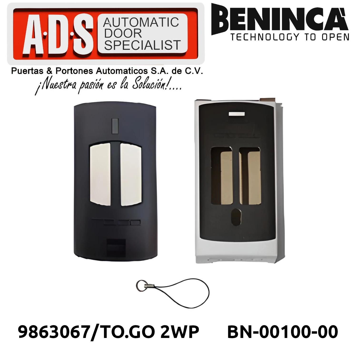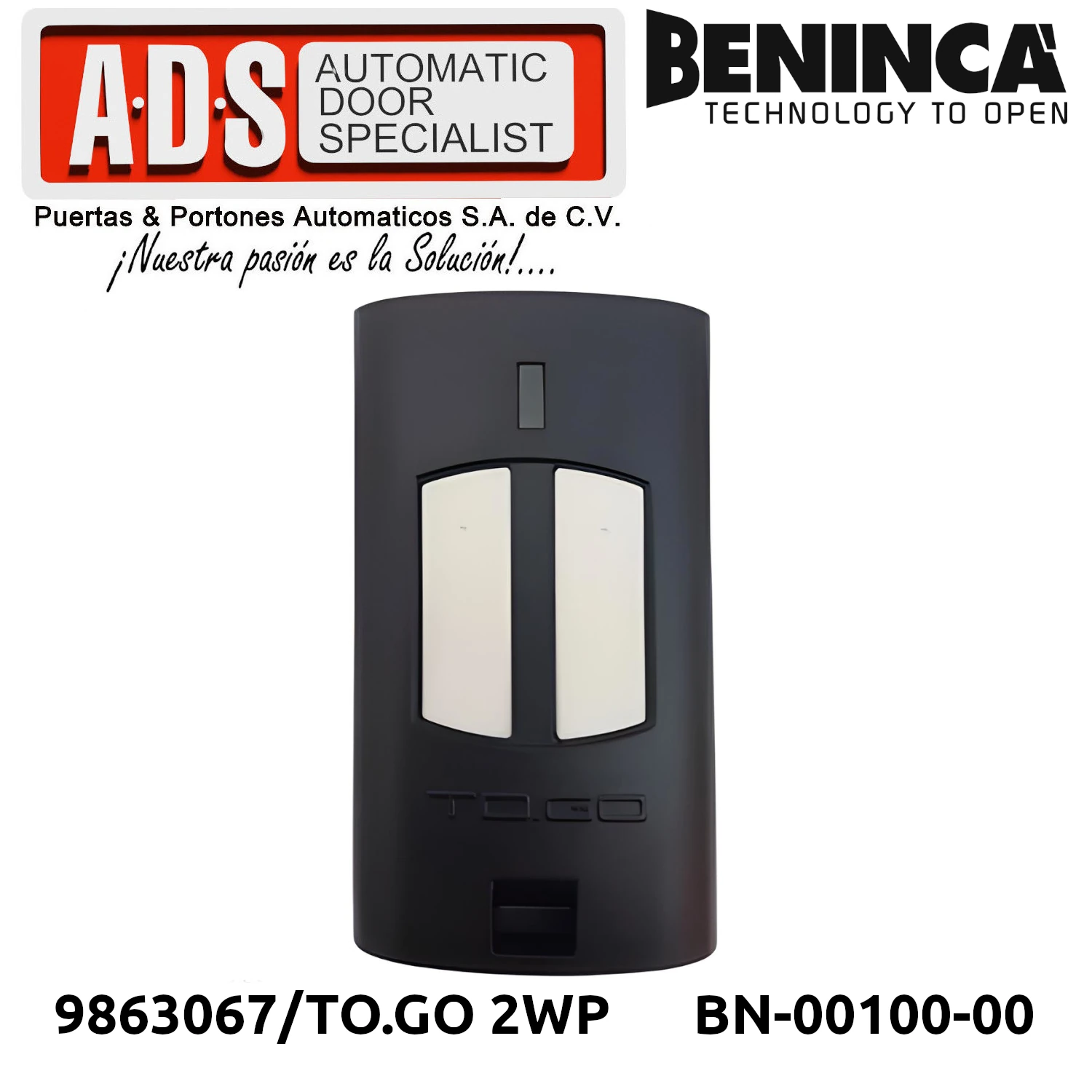 »TRANSMISOR REMOTO 433.92MHZ 2 CANALES MODELO TO.GO 2WP MARCA BENICA