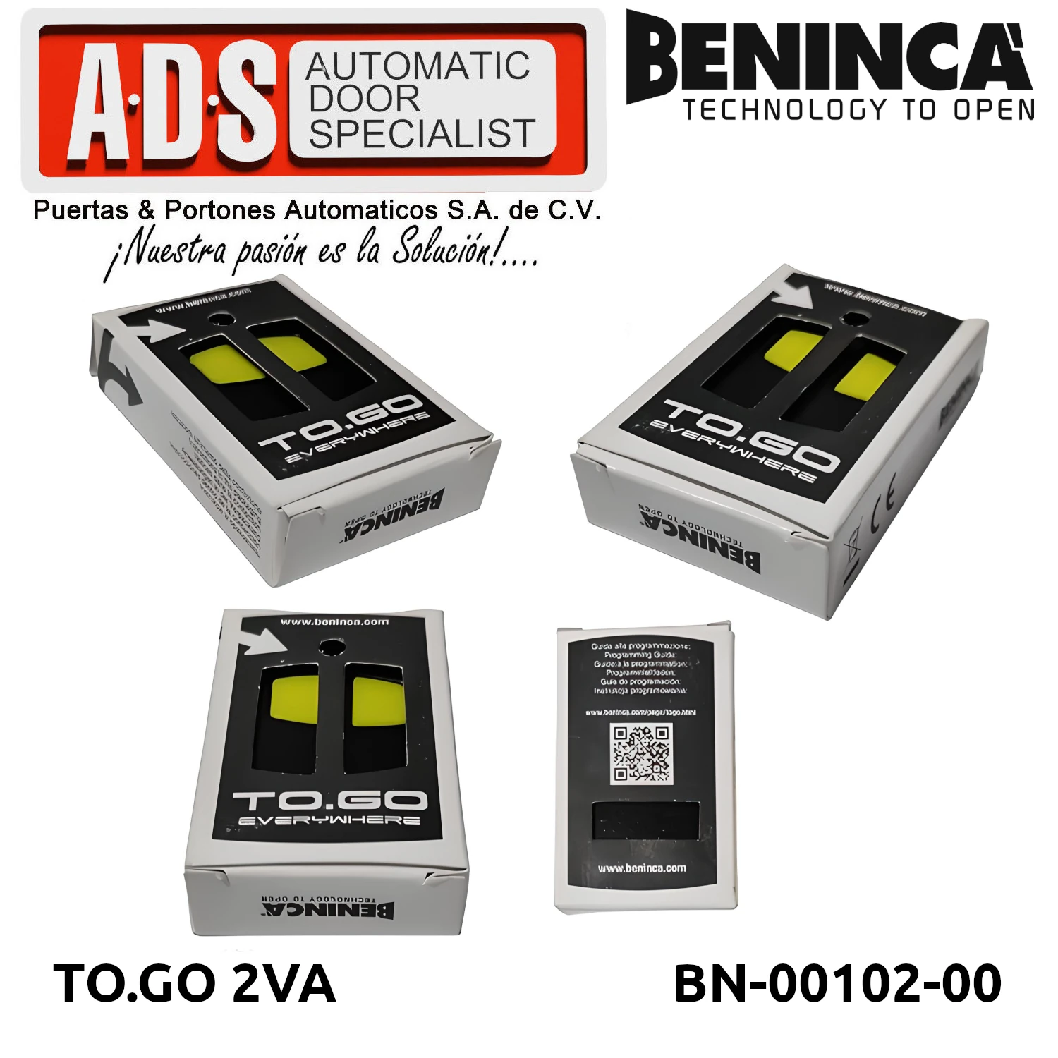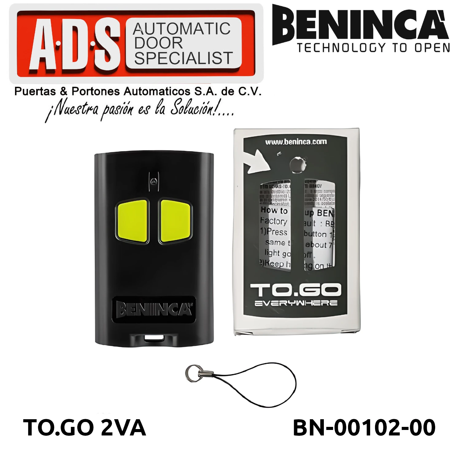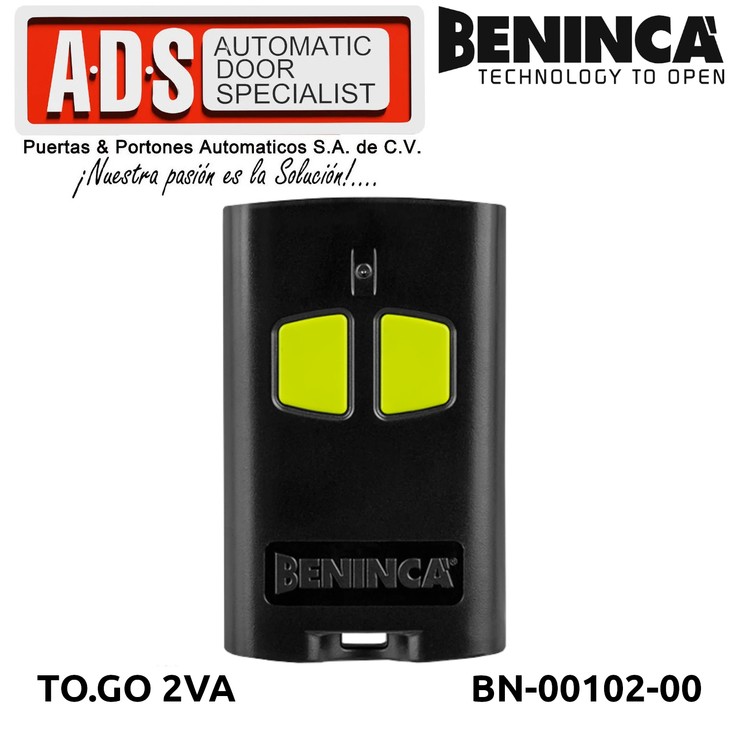 »TRANSMISOR REMOTO 433.92MHZ 2 CANALES MODELO TO.GO 2VA MARCA BENICA