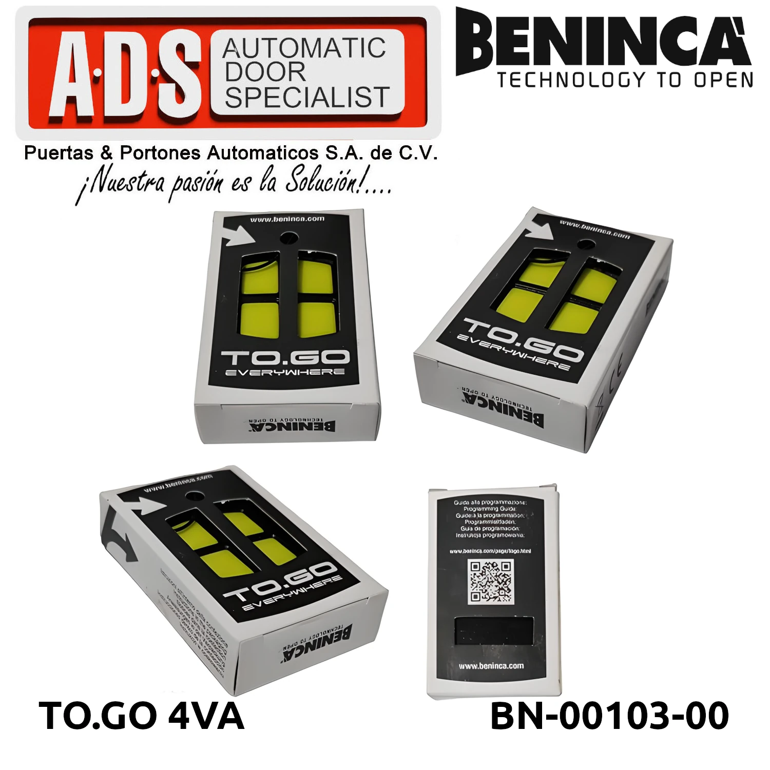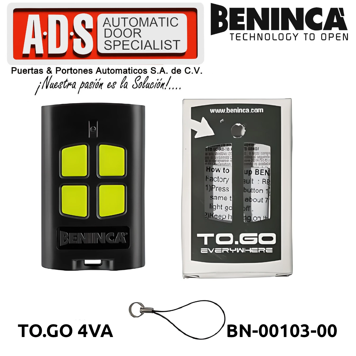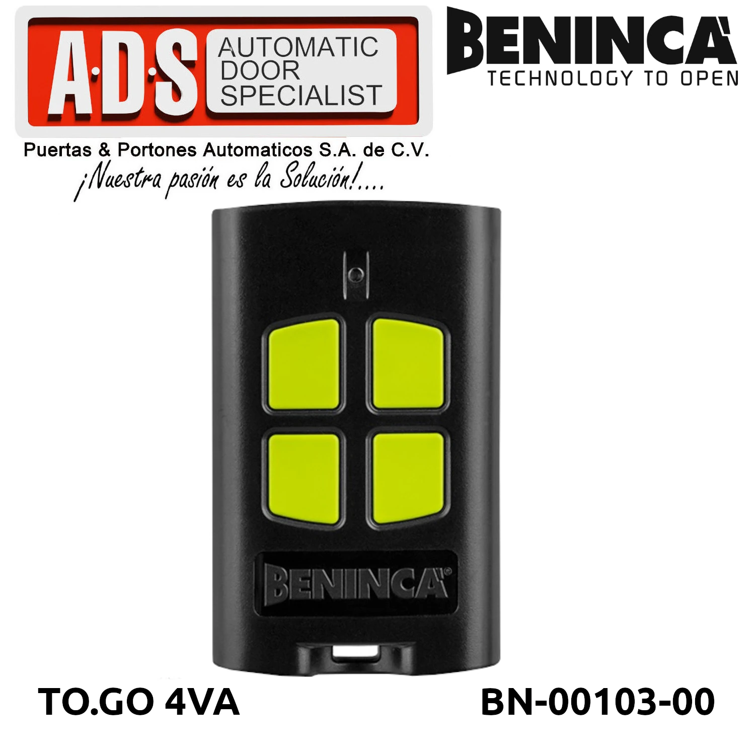 »TRANSMISOR REMOTO 433.92MHZ 4 CANALES MODELO TO.GO 4VA MARCA BENICA/i>