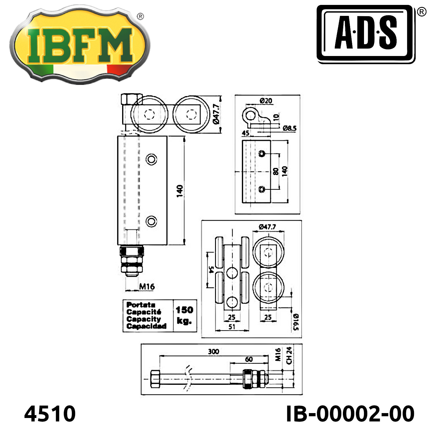 4510 IB-00002-00 CARRETILLA SUPERIOR CON BISAGRA PARA RIEL SUPERIOR 4500