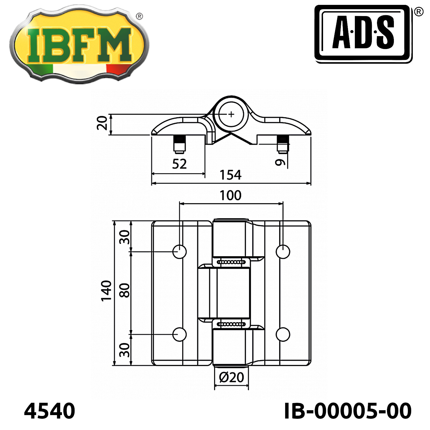 BISAGRA CENTRAL DE ALUMINIO CON PERNO 20MM 4500 MOD.4540