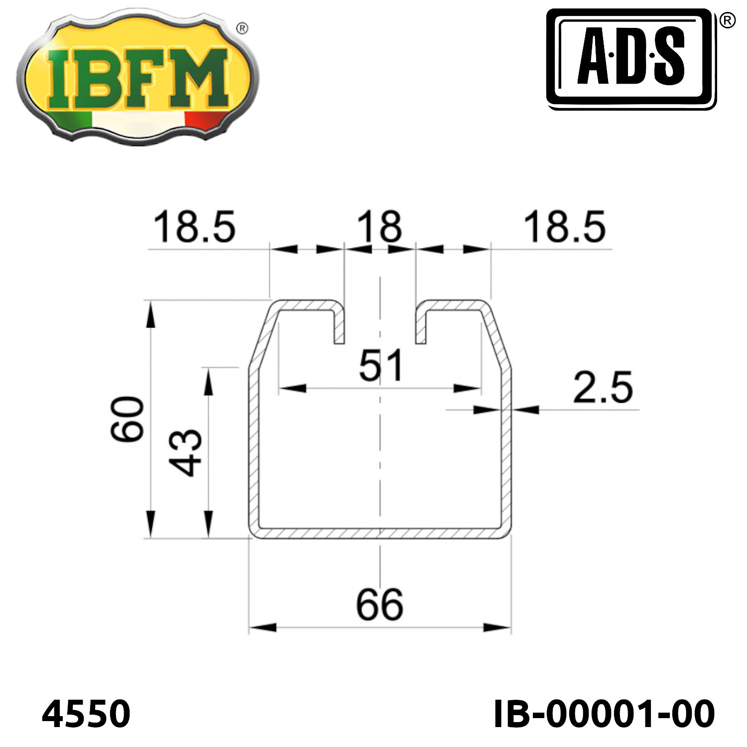 4550 IB-00001-00 RIEL SUPERIOR GALVANIZADO DE ACERO 3M X 2.5MM 4500